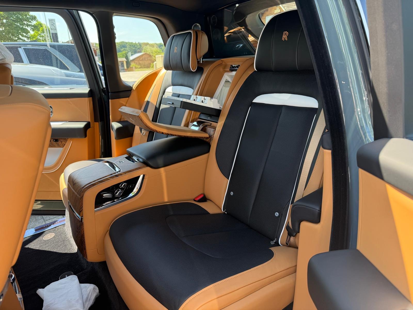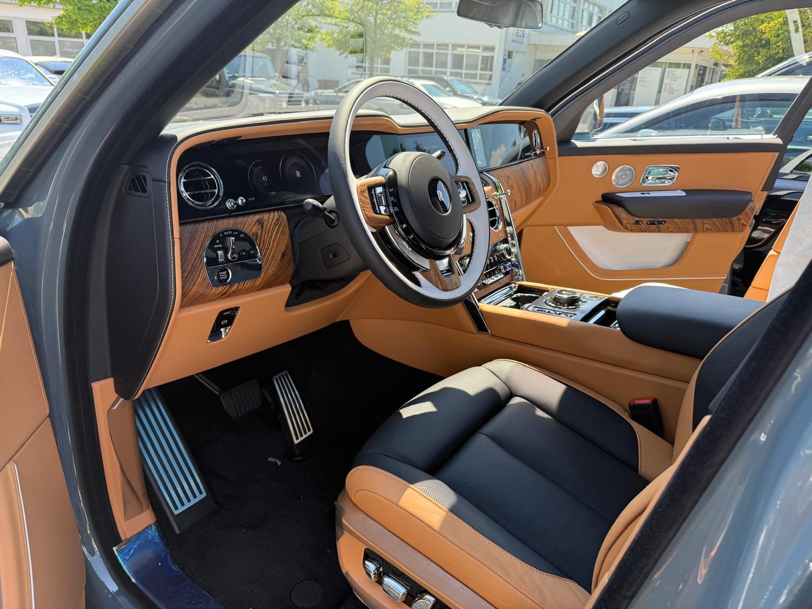 Inside, the Rolls-Royce Cullinan offers a tranquil, meticulously crafted cabin. Luxurious leather upholstery, handcrafted wood panels, and lambswool carpets surround you in comfort. Rear passengers enjoy reclining seats, individual climate zones, and entertainment screens—ideal for both relaxation and productivity on the move.